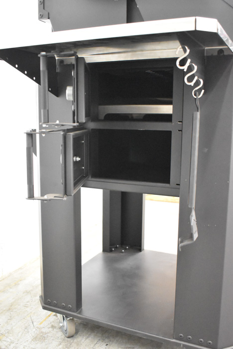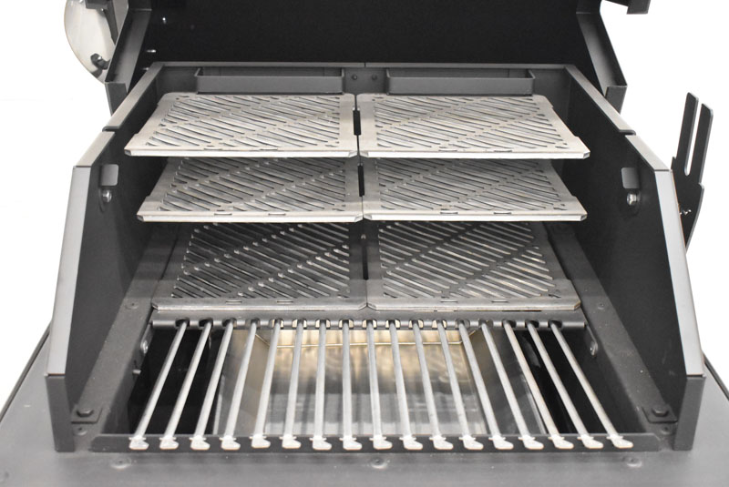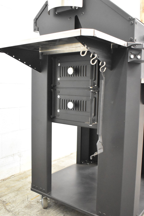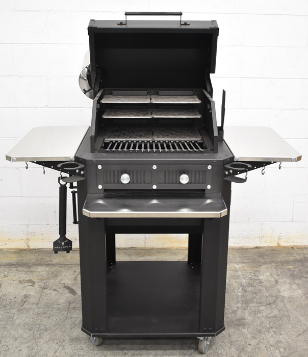 HELLRAZR (NEW IN BOX) FORTRESS charcoal grill & smoker with (6) 1/4″ carbon steel grills, 19″x20.5″ main grilling surface, 19″x10.25″ additional surface, (2) 304 stainless steel charcoal baskets, (1) 304 stainless steel water pan (no temperature gauge)